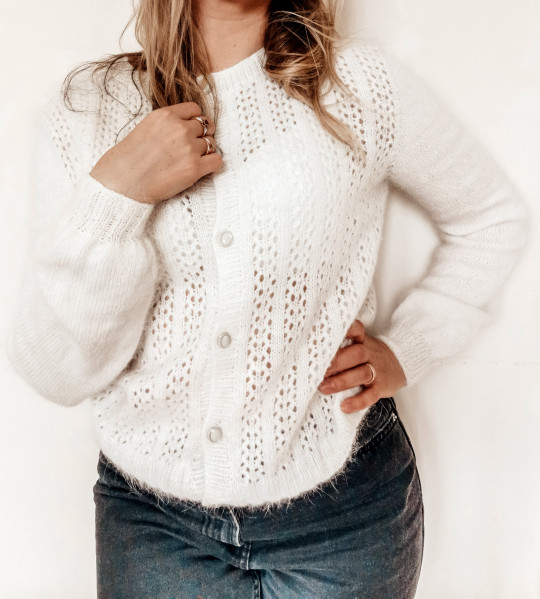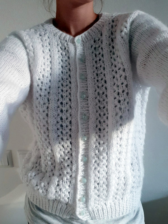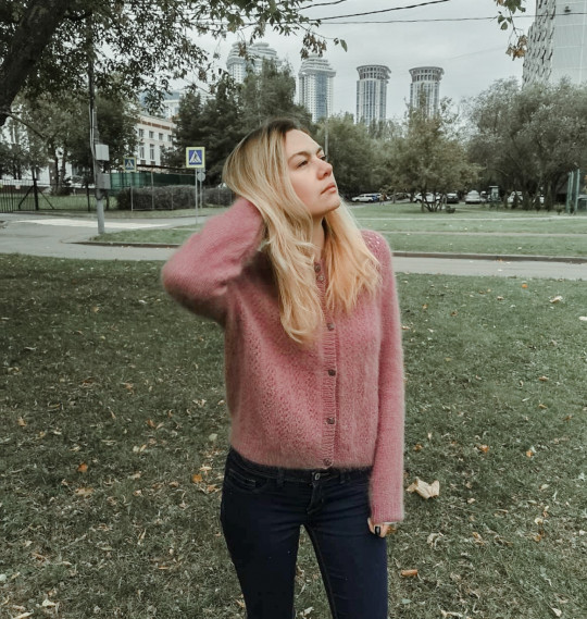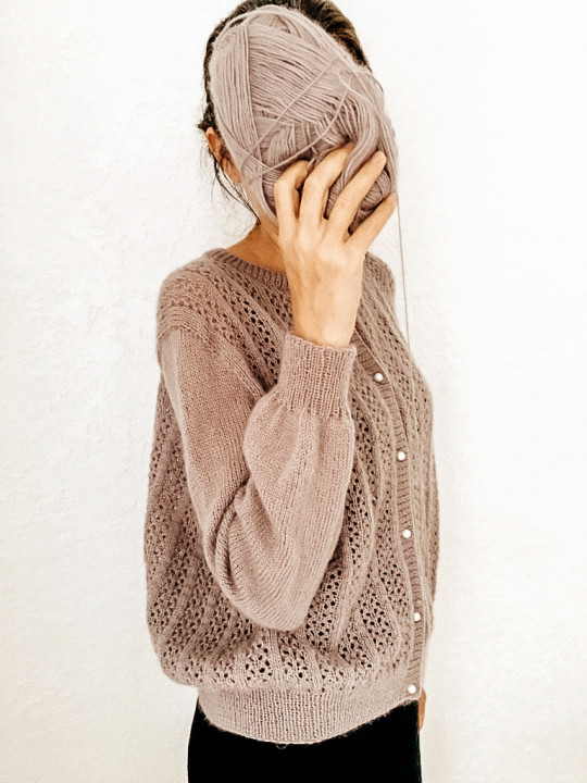 Кофточка свободного облегания (oversize). Вяжется снизу вверх.