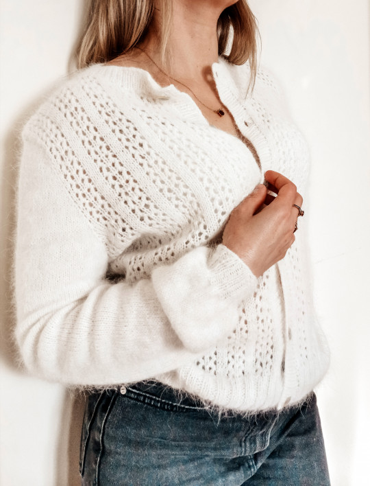 🦊 Страница с альтернативной пряжей и фото кардигана из неё.