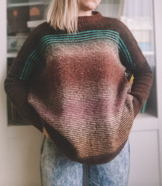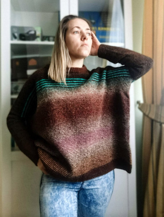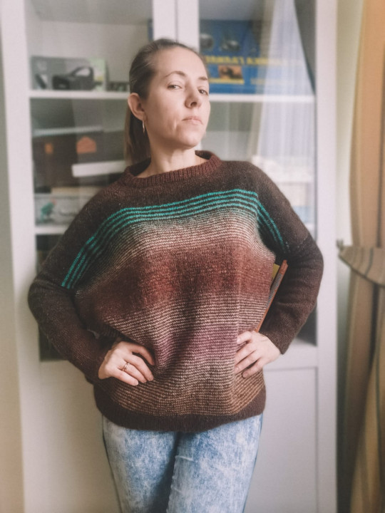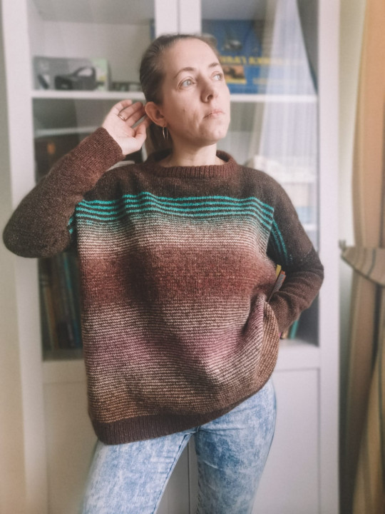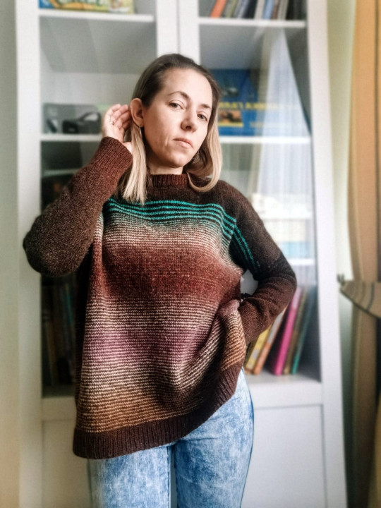 Свитер свободного облегания (oversize) вяжется снизу вверх. Сложность **.