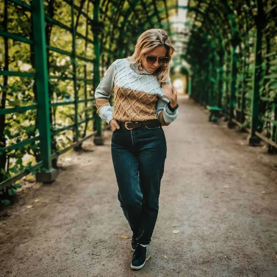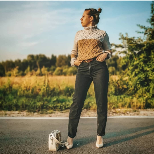 🦊 Свитер свободного облегания вяжется снизу вверх.