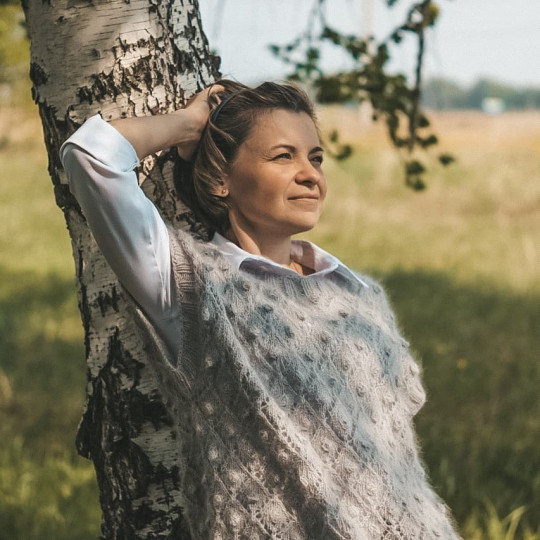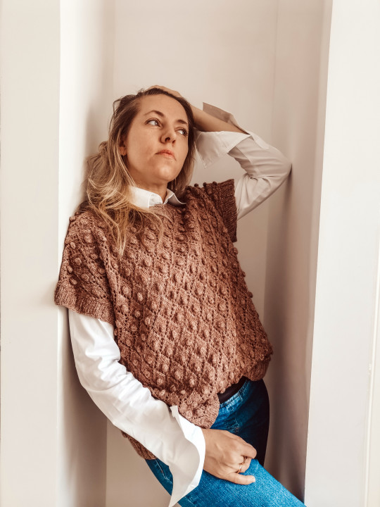 Жилет свободного облегания (oversize). Вяжется снизу вверх.